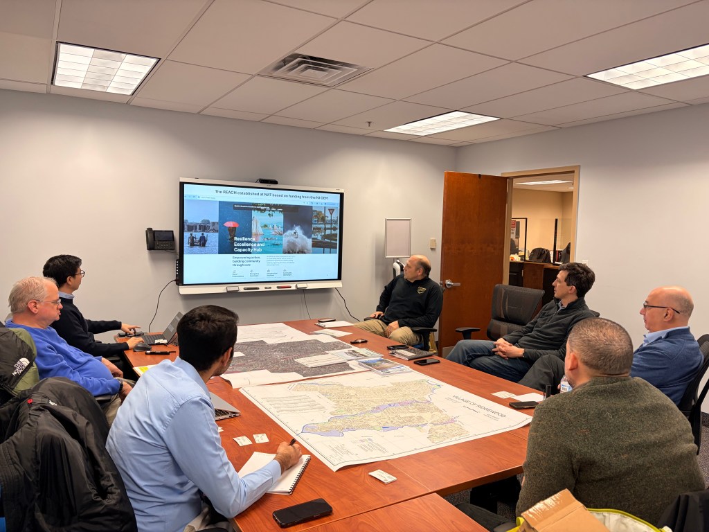 Representatives from the Center for Natural Resources (CNR) at the New Jersey Institute of Technology met with officials from the Village of Ridgewood as part of the REACH (Resilience Excellence and Capacity Hub) program to discuss local flood risks and resilience planning needs.